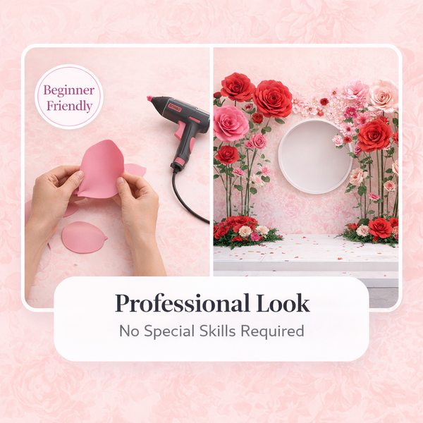 “I was nervous to try a giant flower kit, but the video made it super easy. After I made the first rose, the next three went together in no time. Now I offer ‘giant flower walls’ as an add‑on for my parties.”