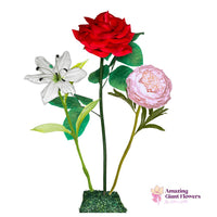 Our giant foam flowers are designed for quick and intuitive setup, allowing you to create stunning displays with minimal effort. Each standing flower arrangement comes with a beautifully pre-decorated base, ready to impress right out of the box. Simply unbend the pre-attached pipes, insert your flowers and leaves onto the designated pipes, and your breathtaking display is complete! Most arrangements can be fully assembled in under 15 minutes – it's truly fast and easy, with no special tools required!