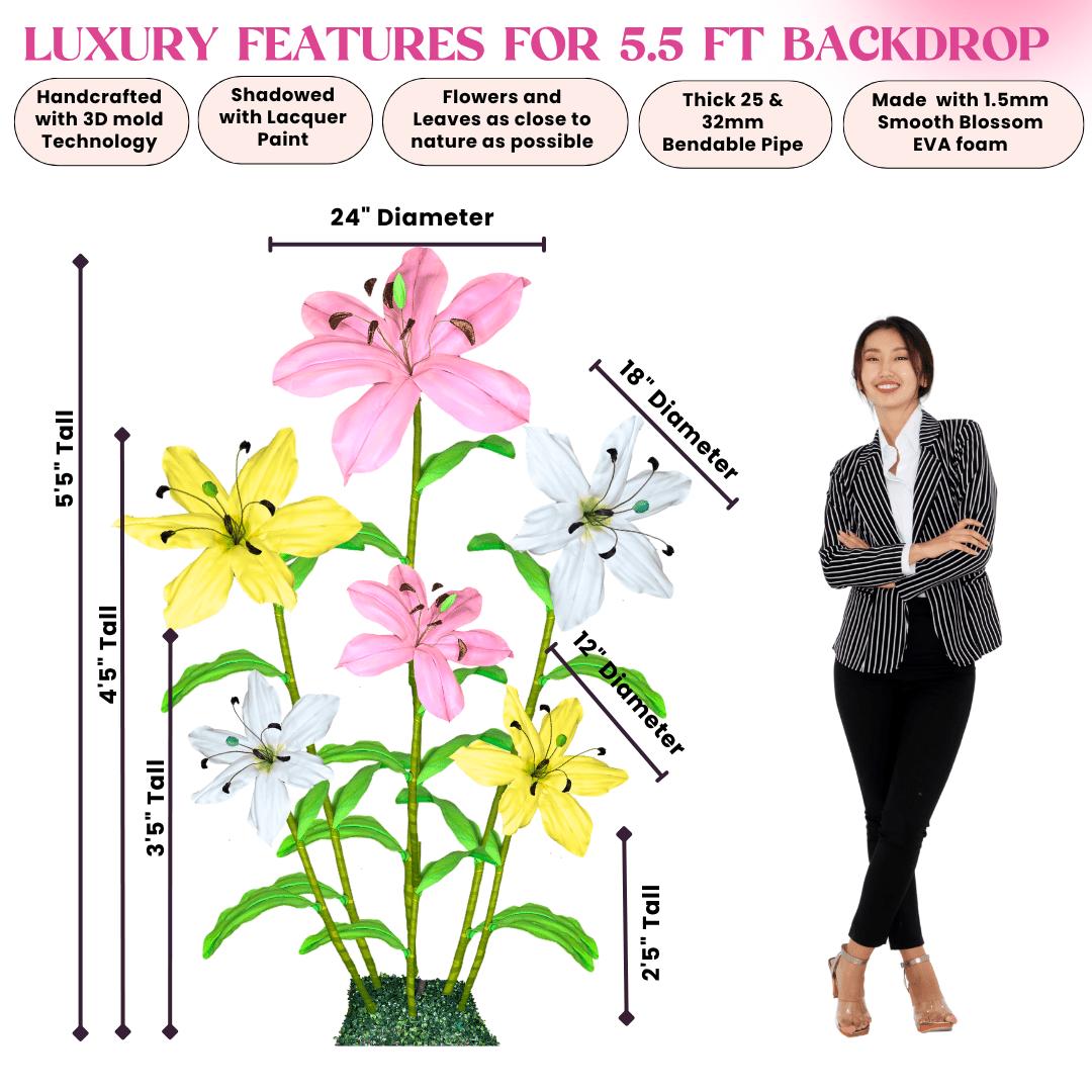 We offer limited rentals only on pre‑made giant flowers and existing backdrop sets in our inventory. Fully custom‑made designs are purchase‑only and are not available to rent.