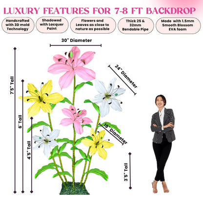 Our giant foam flowers are designed for quick and intuitive setup, allowing you to create stunning displays with minimal effort. Each standing flower arrangement comes with a beautifully pre-decorated base, ready to impress right out of the box. Simply unbend the pre-attached pipes, insert your flowers and leaves onto the designated pipes, and your breathtaking display is complete! Most arrangements can be fully assembled in under 15 minutes – it's truly fast and easy, with no special tools required!