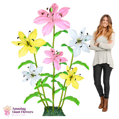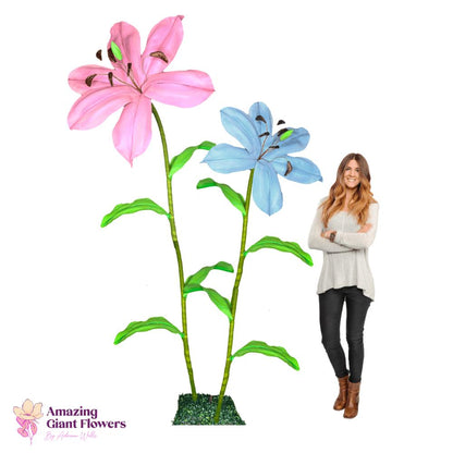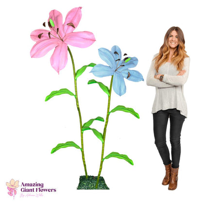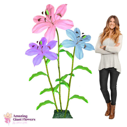 Yes. Each giant flower or arrangement is built with weighted, venue‑safe bases or frames: