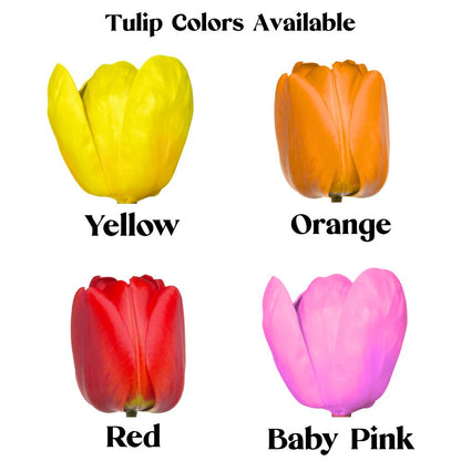 Start by choosing your preferred composition and share your color palette—together, we’ll design a giant tulip floral arrangement that feels uniquely yours and unforgettable for your guests.